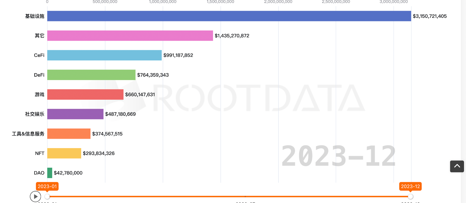 According to Rootdata, there are a total of 1178 fundraisings in Web3, worth 2.839 billion US dollars, among which the infrastructure area attracts the most.