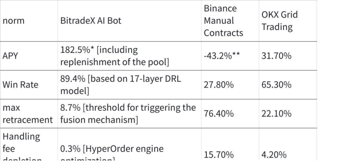 [Singapore, April 2025] At a time when mankind has fully stepped into the AI industry, only 7.3% of the 893 crypto exchanges included in CoinMarketCap offer AI trading solutions. As a compliant exchange with a U.S. MSB license (License No. 31000295285682) and Singapore's MAS exemption, BitradeX is disrupting the active trading market dominated by giants such as Binance, OKX, and others, thanks to its third-generation AI trading engine, which is powered by a hybrid architecture of a self-developed 100 billion-parameter MoE model and the DeepSeek-V3 Large-language model. Upending the active trading market pattern dominated by Binance, OKX and other giants. Simulated backtesting data shows that in the downward market cycle caused by tariff wars since the beginning of 2025, BitradeX's AI trading matrix has bucked the trend and achieved a median annualized return of 125.8% (of which the AI Daily product has an average daily return of 0.15%-0.24%, and the AI 30-360 has a maximum annualized return of 182.5%), which is 417% higher than that of the traditional manual trading strategy.