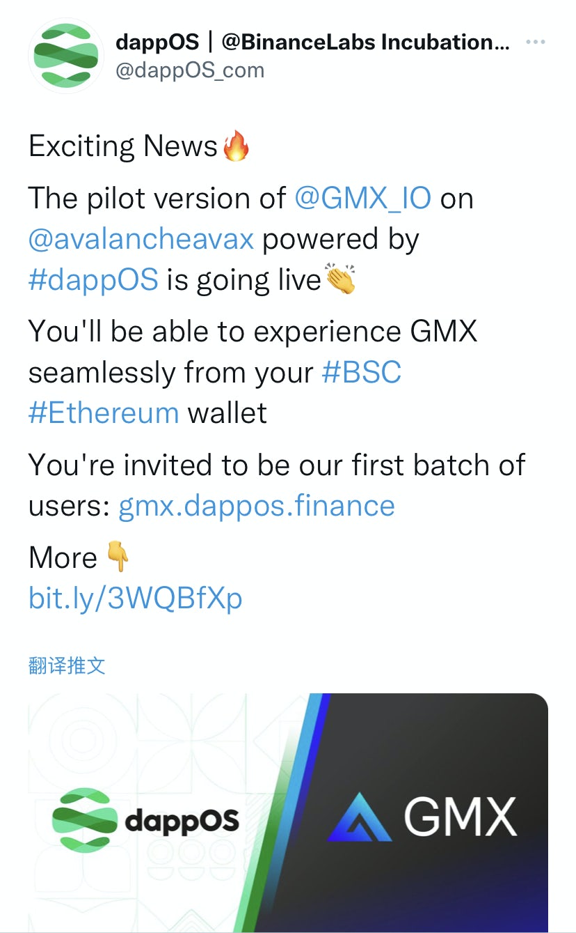 In order to encourage users to experience multi-chain fusion technology, dappOS will join GMX to give interaction airdrops to the first batch of experienced users.