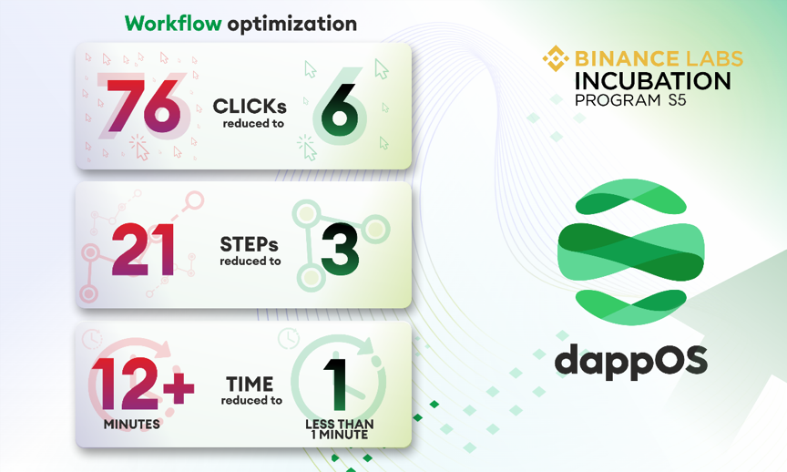 The dappOS Network provides automated execution services for users. This means that with just a signature confirmation from the user, the dappOS Network will perform interaction operations on multiple chains using virtual wallets, including cross-chain payments, exchanges, and multiple chain and task operations. Tasks that may have previously required over 10 minutes of manual operation can now be completed in less than a minute with the help of dappOS Network's "one-click confirmation.