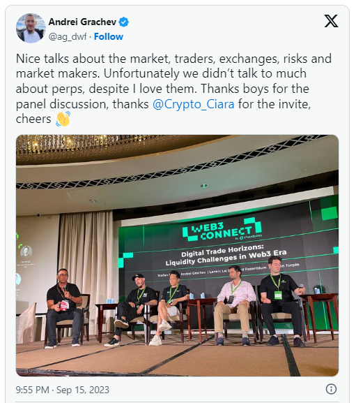 Grachev “had absolutely no business to be on that panel,” Cristian Gil, co-founder of market-making giant GSR, posted days later on X. “It’s insulting to [GSR], [crypto exchange OKX] and [Wintermute] to be in the same room as [DWF].” Evgeny Gaevoy, the CEO of huge market maker Wintermute, then clicked “Like” on that post.