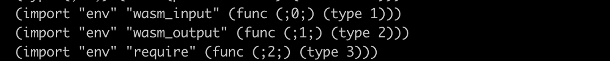 • Dependence on JavaScript/Browser Host Environment: the compiled Wasm code relies on a JavaScript/Browser host environment, which is impossible to emulate in zkWasm;