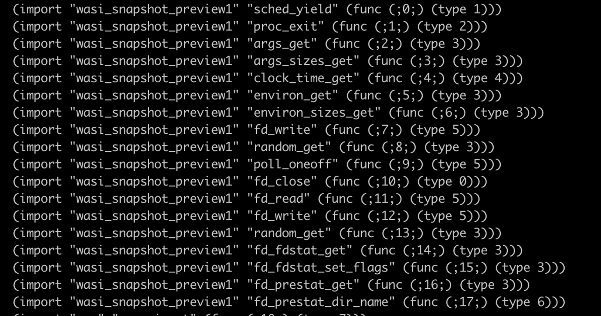 WASI-compiled code relies on a list of OS-like interfaces (imports).