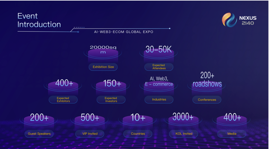 Nexus 2140 is the world’s first international expo dedicated to the deep integration of artificial intelligence (AI), Web3, and e-commerce (ECOM). It serves as a global collaborative platform for technology, business, and policy innovation. Endorsed by governments worldwide, we have forged strategic partnerships with South Korea, Singapore, the UAE, the EU, and other nations to drive technological application and industrial innovation through policy empowerment, resource integration, and cross-border collaboration. More than a showcase of cutting-edge technologies, Nexus 2140 is the core hub for global enterprises, investors, and policymakers to explore future business paradigms and seize transnational opportunities.