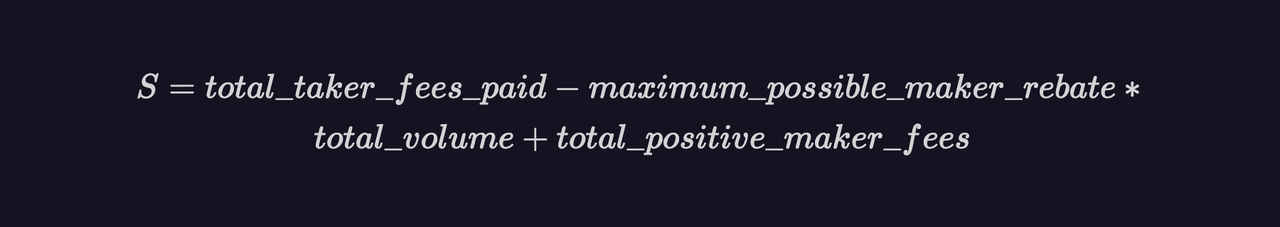 In each block, rewards are distributed in proportion to the scores of all traders. The specific reward calculation formula consists of three main components, including the trader's reward score, the sum of all trader scores, and the reward amount allocated to traders in each block.