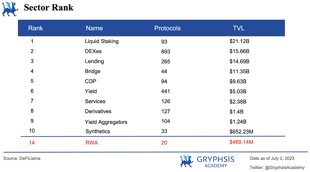RWA has long been viewed as a game-changer in accelerating the adoption of digital assets. However, hurdles like regulatory constraints and laborious on/off-chain processing have limited RWA’s use cases. Noteworthy RWA sectors include RWA Lending, represented by Goldfinch and Centrifuge, and protocols like Ondo Finance and OpenEden, aiming to bring US Treasuries on-chain. With a TVL of $467M, the RWA ranks 14th among all DeFi categories, signifying its fledgling state while also revealing its growth potential.
