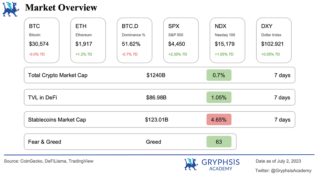 Compared to last week’s robust activity, the crypto market has displayed relative stability this week. Both $BTC and $ETH have hovered near their opening prices for the week,and the BTC dominance has seen a minor decrease, now sitting around 51.2%. Contrarily, the NFT market has witnessed a significant sell-off, potentially triggered by the controversial launch of Azuki Elementals.