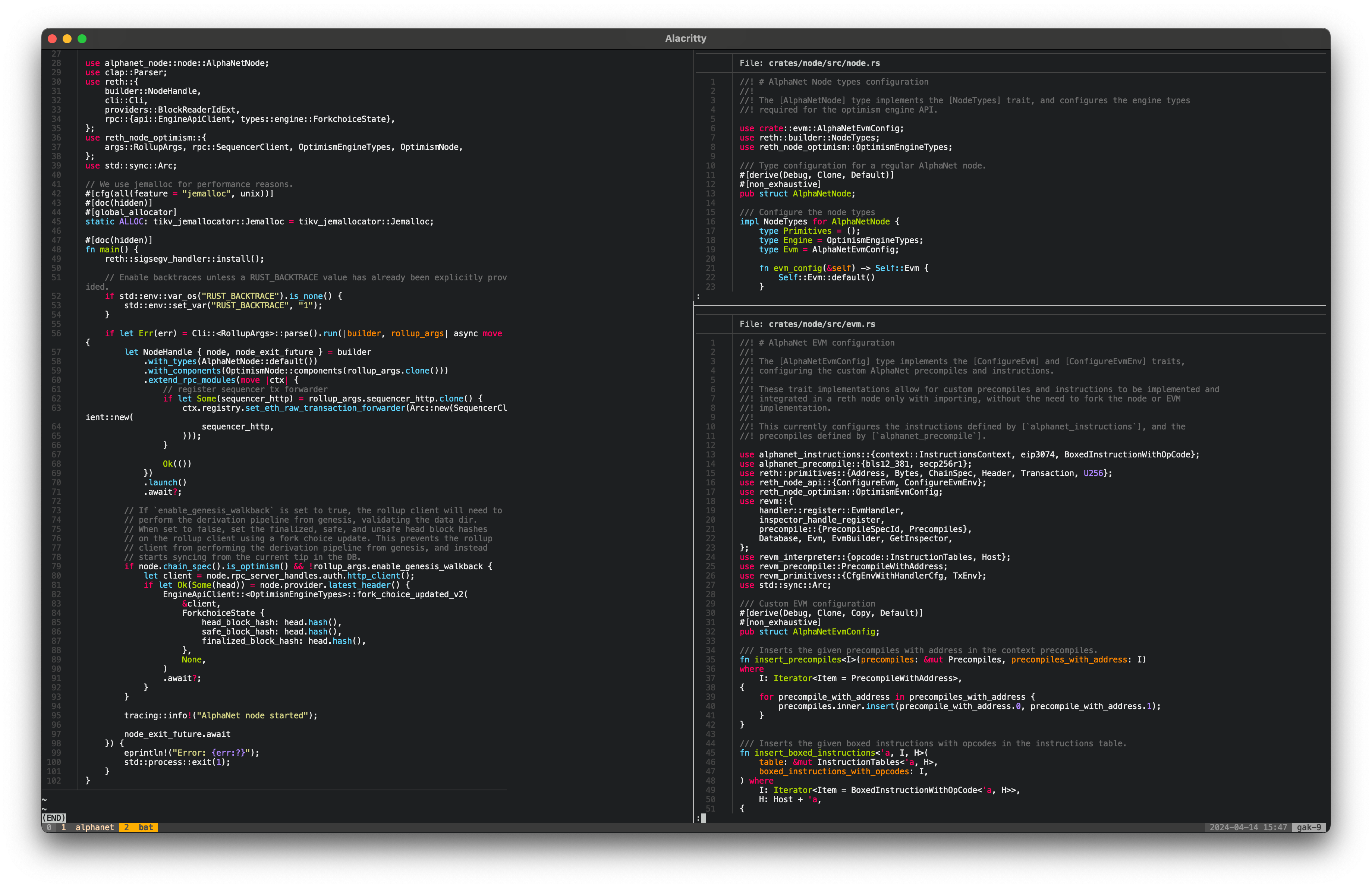- AlphaNet implements the OP Stack standard's Ecotone Hard fork via the Node Optimism crate.
