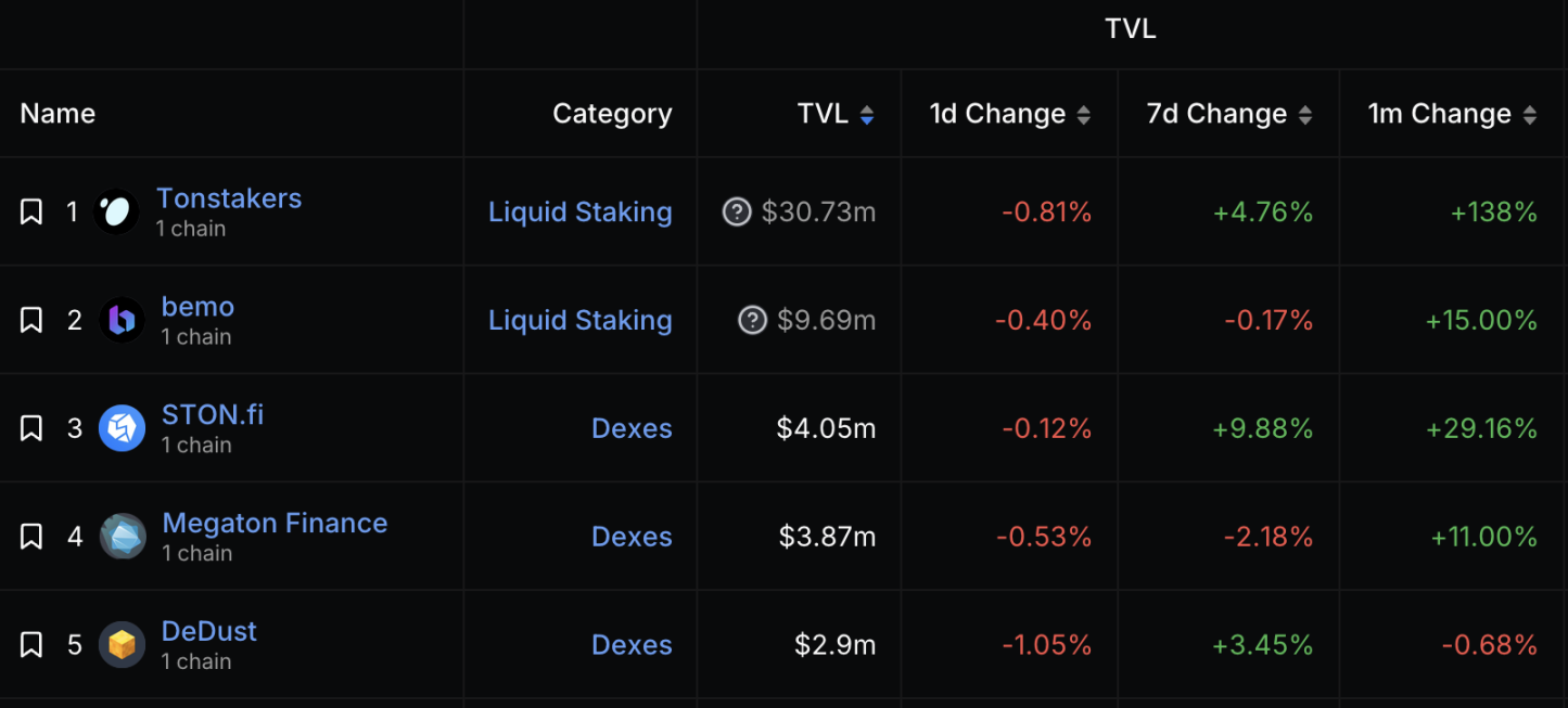 Ston.Fi, operating in the same track as Megaton Finance, is another decentralized exchange (DEX) based on AMM technology. Backed by the influential TOP Labs development team, which plays pivotal roles in the TON ecosystem and has joined forces with 1inch, a mainstream exchange on Ethereum. This strategic alliance and strong backing have propelled Ston.Fi to achieve a Total Value Locked (TVL) of $3.2 million, positioning it as the second-ranked DEX in terms of TVL within the TON ecosystem.