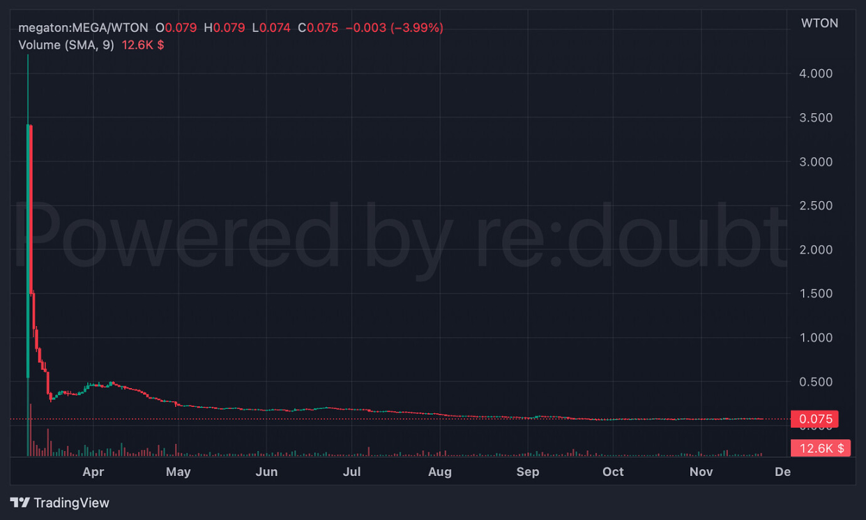 Following its listing, $STON started trading at around $0.4 and experienced a significant rise, surging over 200% within a month to reach approximately $1.3 and briefly spiked to $1.8. Although it has recently adjusted back to the $1.3 range, its performance remains relatively stable, especially when compared to the price movements of its competitor, $Mega.