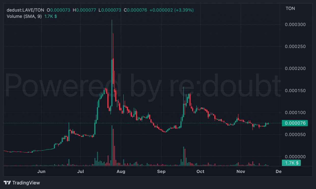 $Lave, renowned as the most famous Memecoin on TON, has a somewhat legendary ascent. Those familiar with other public blockchains might recognize the strategy of airdropping tokens to active wallet address, a tactic used by many projects to capture investor attention and boost token holder counts, even though these tokens often hold little value initially.