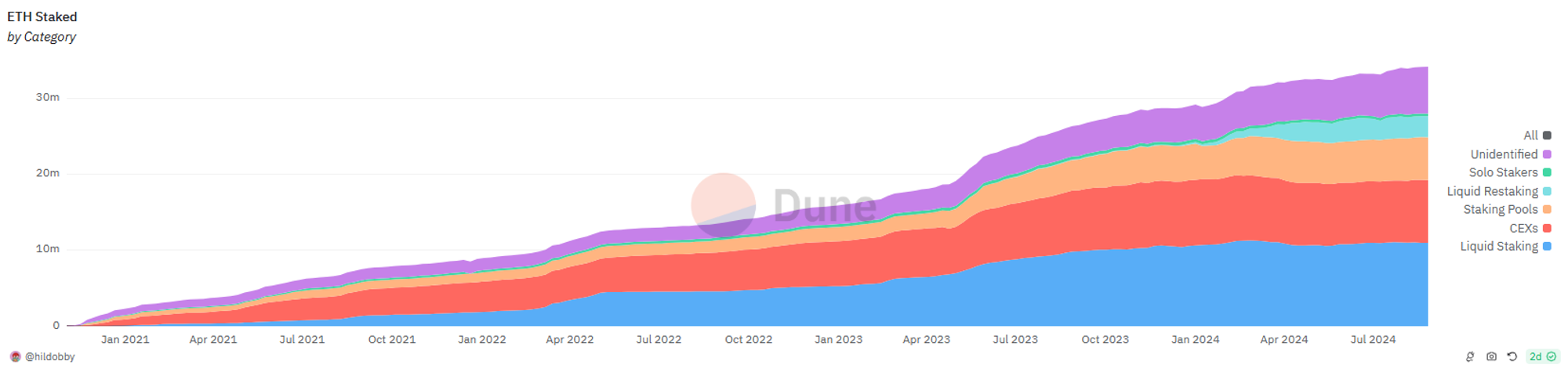The growing interest in Restaking is evident in the chart above. The amount of ETH staked in Restaking protocols, highlighted in mint green, has increased rapidly over the past six months, with approximately 2.7 million ETH staked in protocols like EigenLayer. This demonstrates the market’s keen interest in this area.