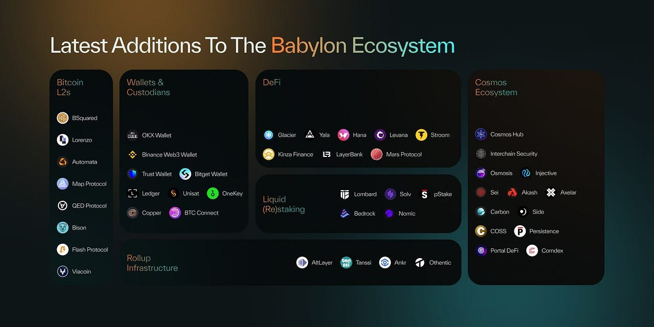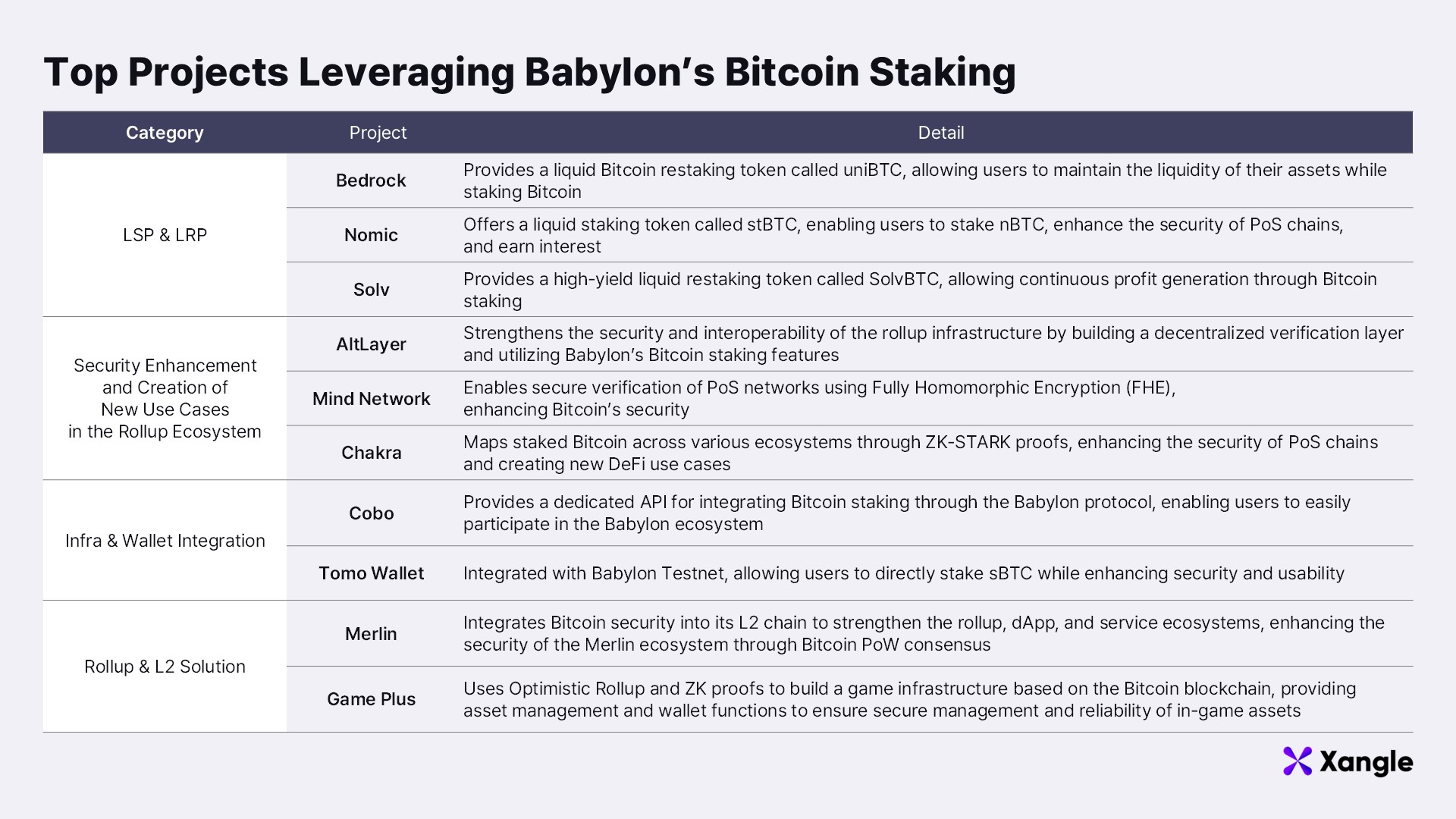 Babylon’s Bitcoin staking protocol is experiencing rapid growth through collaboration with various partners. Several projects are emerging that leverage Bitcoin staking to create new use cases and economic opportunities. Some of the key projects include:
