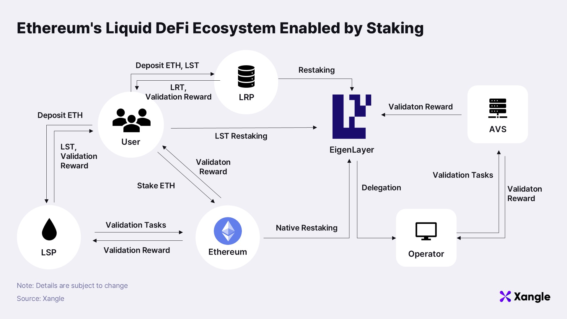 In contrast, Ethereum, through the ‘The Merge’ upgrade, transitioned from PoW to PoS, introducing a system where staking not only enhances network security but also offers staking rewards. This transition has spurred economic expansion within the Ethereum ecosystem, leading to innovative concepts like Liquid Staking Tokens (LSTs), where staked Ethereum is used as collateral for various financial products. Moreover, the narrative of Liquid Restaking, which involves using staked assets to enhance the security of other middleware services, has evolved within Ethereum, creating a structure that generates new economic value.
