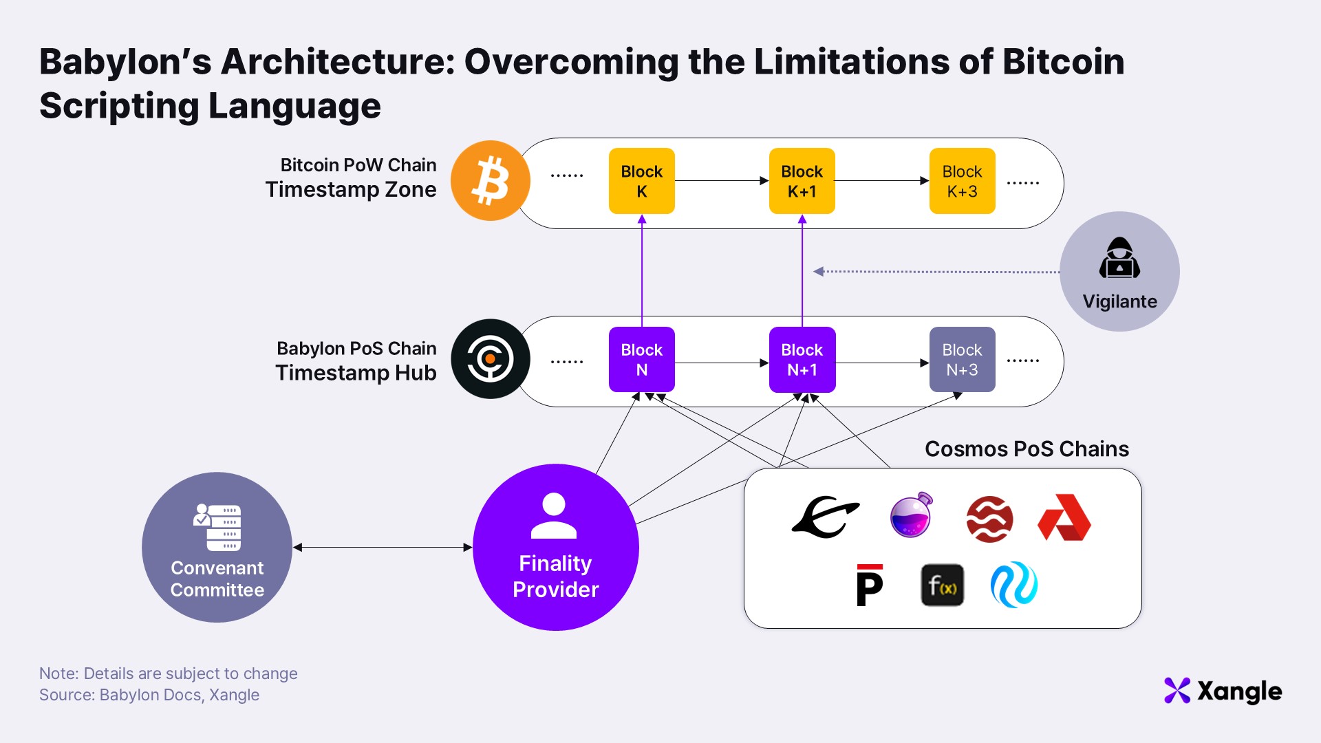 To address the inherent limitations of Bitcoin's scripting language, Babylon has meticulously designed a complementary protocol. The Babylon Chain, built on the robust foundation of Cosmos CometBFT, not only upholds Bitcoin's stringent security standards but also enables the execution of more complex and diverse functionalities. This is made possible through the integration of an independent validation entity known as the Finality Provider, entrusted with Bitcoin. By harmoniously integrating various modules and programs, Babylon extends the utility of Bitcoin far beyond its original design constraints.
