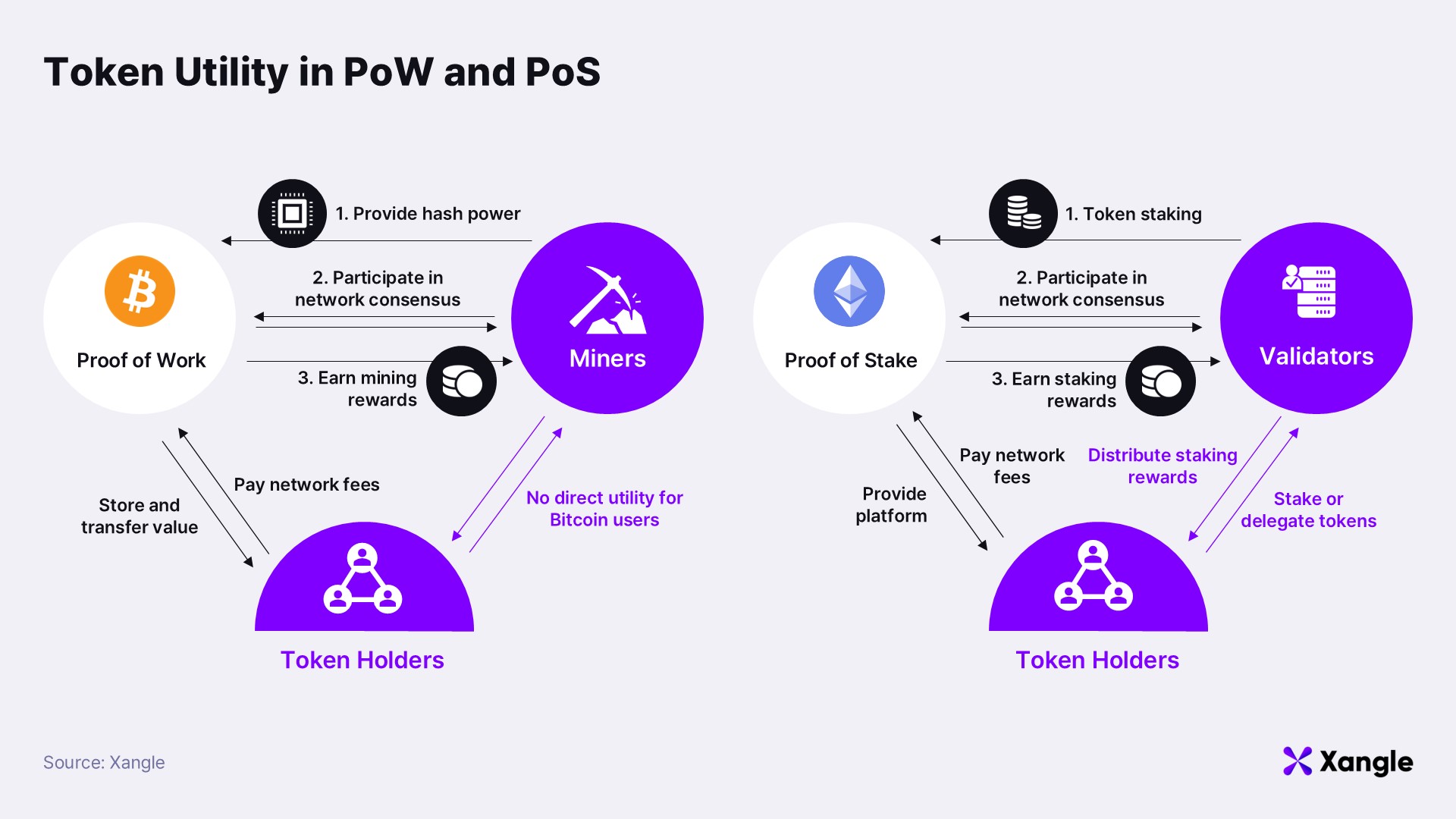 The structural limitations of Bitcoin, as previously discussed, have greatly restricted its range of applications, and its Proof of Work (PoW) mechanism has further exacerbated these limitations. In a PoW system, Bitcoin providers, or miners, are primarily incentivized through block rewards and transaction fees. However, for Bitcoin holders, the only economic incentive has been to hold onto their Bitcoin in the hope of price appreciation, with no additional benefits from network participation. This structure has confined Bitcoin’s utility primarily to its role as a "store of value," rather than promoting active utilization within its network.