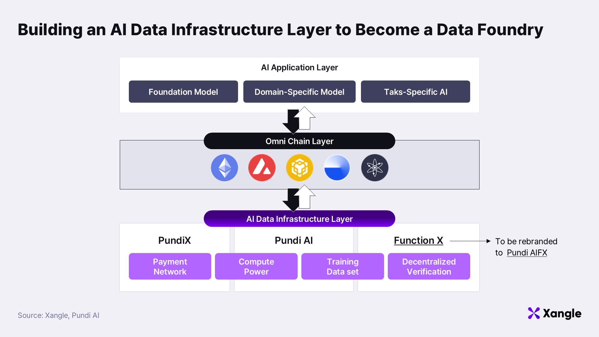 In the Pundi AI ecosystem, Pundi AIFX is responsible for tokenizing and transmitting data using blockchain technology. Formerly known as the FunctionX chain, this rebranded chain will function as an omni-chain for AI data interoperability. Pundi AIFX (formerly FunctionX) enables the transfer and trading of tokenized AI data across blockchains, effectively combining AI data with blockchain.