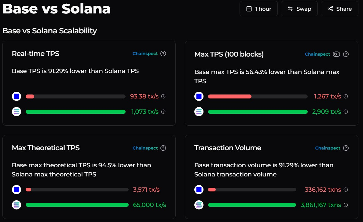 Solana still outpaces Base despite the Ethereum L2’s surge