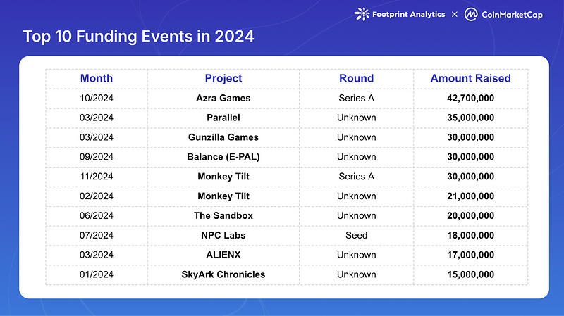 The year saw selective but significant funding rounds, with seven projects raising over $20 million in single events. Azra Games led with a $42.7 million Series A round, focusing on bringing console-quality gameplay to mobile platforms.