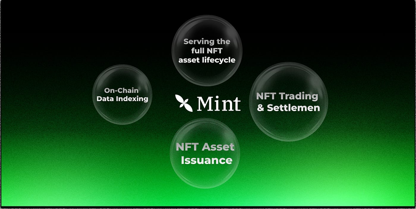 Currently, 100+ decentralized applications are live on Mint across various verticals. Mint is also building a full-stack decentralized NFT infrastructure — from issuance and trading to data indexing and lifecycle services.