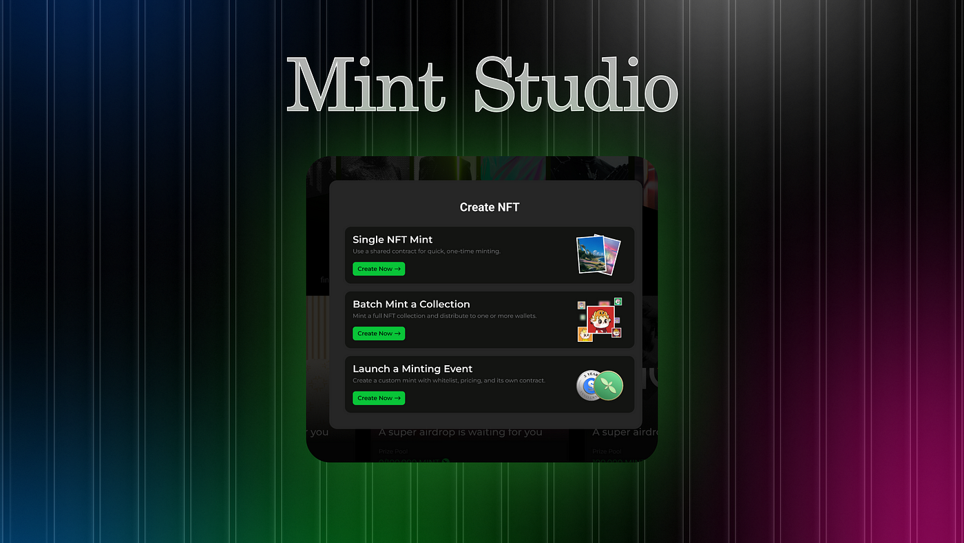 We’re excited to officially launch Mint Studio — a fast, intuitive, and multi-chain platform designed to simplify NFT creation for everyone. Whether you’re an individual, a Web3 project, or an artist, Mint Studio makes it easier than ever to mint, distribute, and connect value through NFTs.