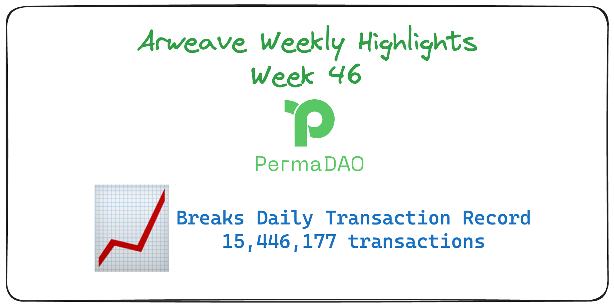 1. On November 17th, the Arweave network's daily transaction volume broke previous records, reaching 15,446,177 transactions.