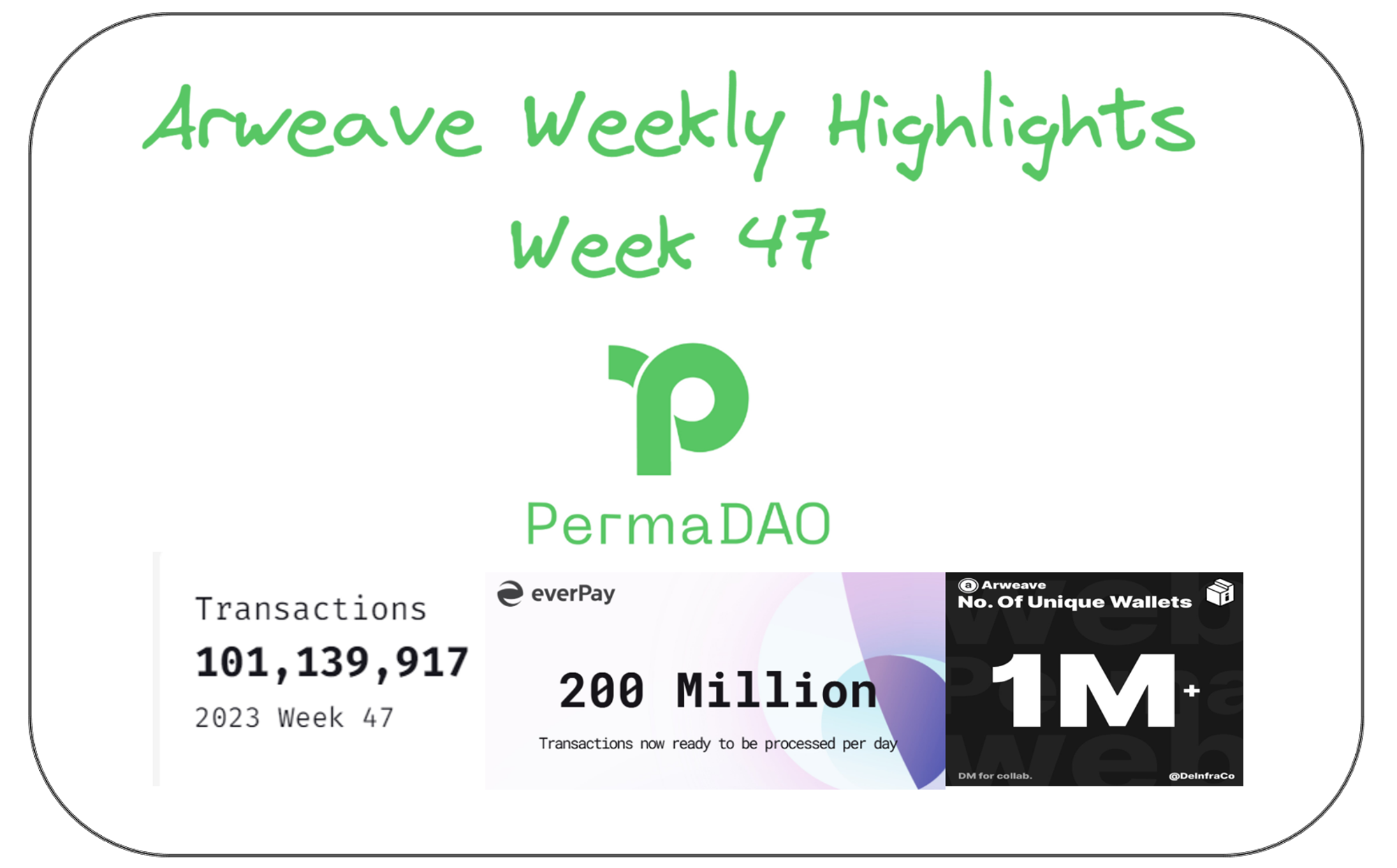 1. The cumulative transaction data of Arweave mainnet reached a weekly high of 101,139,917!
