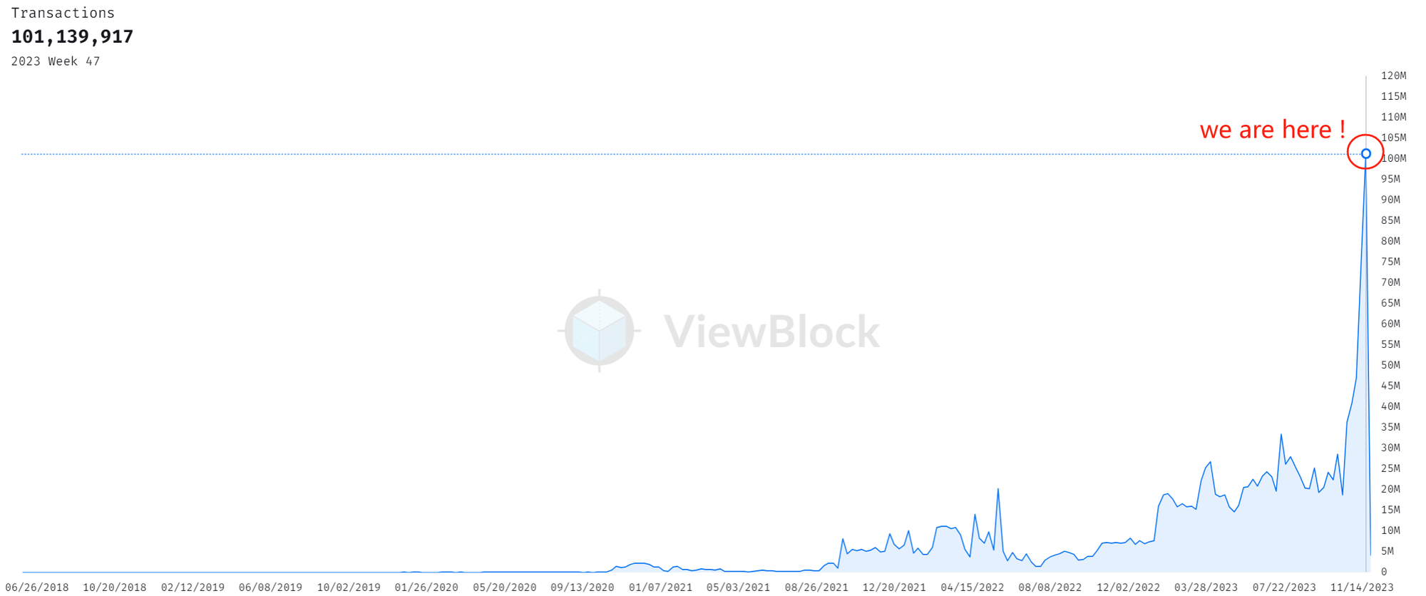 🔥 The weekly transaction volume of the Arweave network reached a new high, breaking records with 101,139,917 transactions.