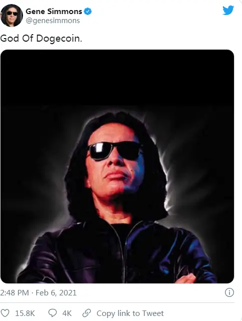 • Gene Simmons : KISS lead singer Simmons calls himself the "God of Dogecoin". In February 2021, he posted a post declaring that he had purchased a large amount of Dogecoin, and the price immediately rose by 55%, reaching a historical high of $0.084. He also invested in other crypto assets such as Cardano's ADA, showing a diversified strategy.