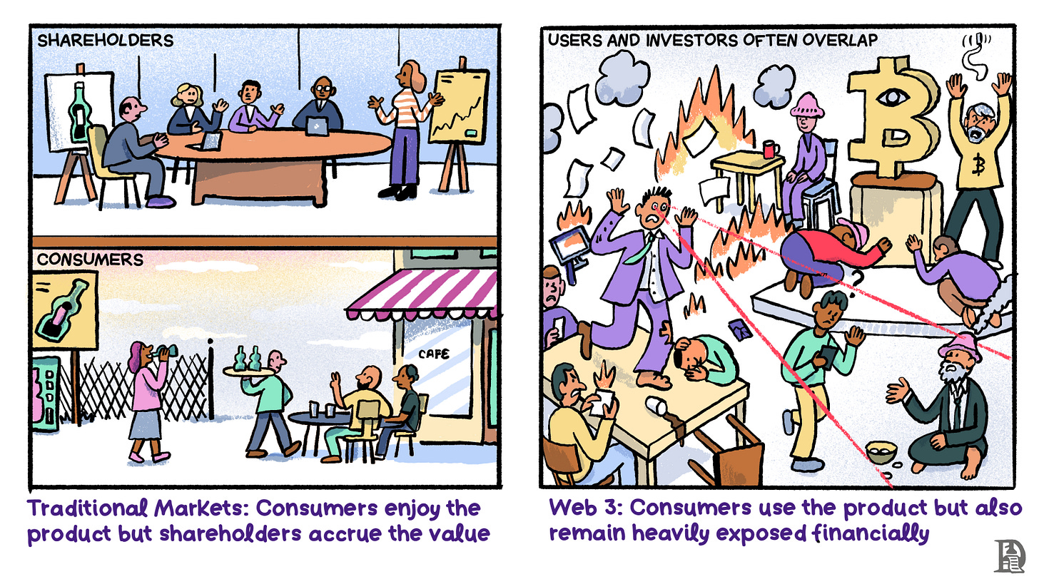 A repeat mistake marketers often make is confusing allegiance to a token, with that of a product. Matthew from Kraken drew an interesting parallel to explain this situation. When you buy Coca-Cola, the drink, your only interest is in its ability to blast dopamine through your brain cells with the sugary overload it induces in your body. Worrying about Coke’s share price is an institutional investor’s concern. Warren Buffet’s, perhaps. In crypto, the user and the asset are intertwined. Most users come for the asset. And oftentimes care little about the underlying product itself. This is probably why much of Web3’s userbase is found on exchanges, and not in its dApps.
