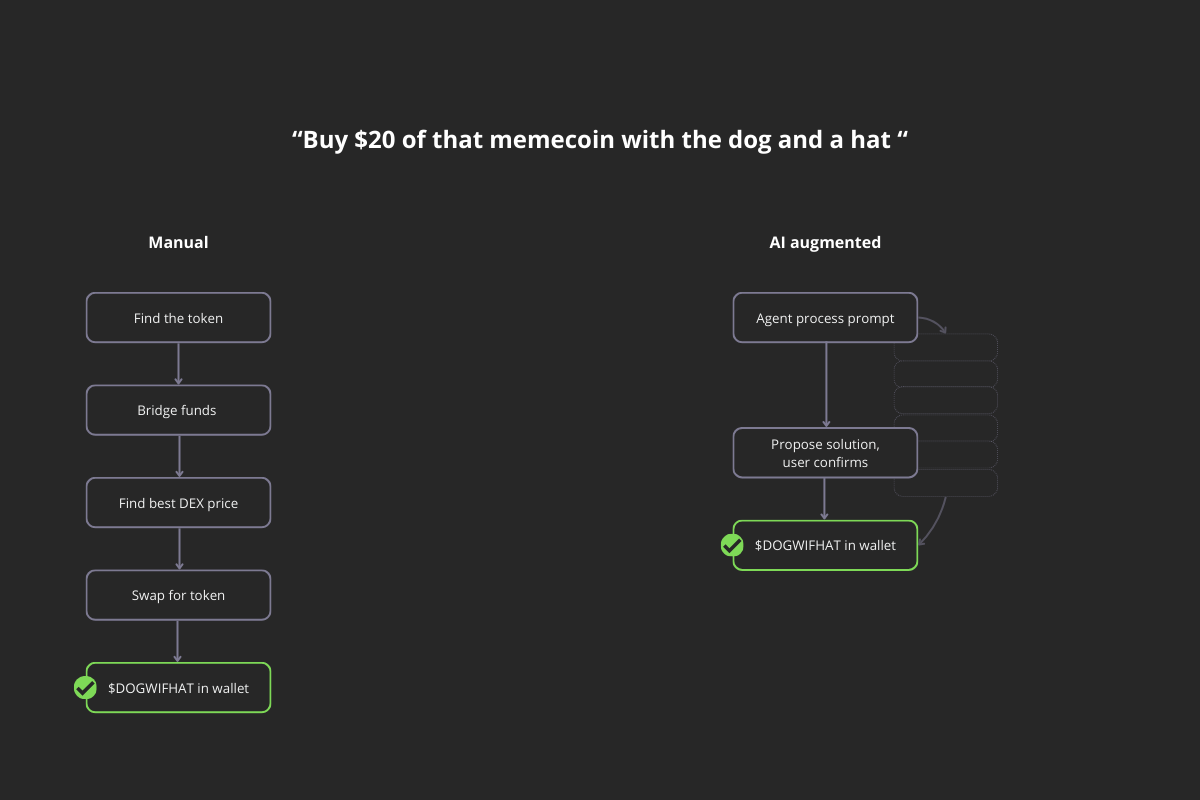 Agentic products will abstract away this complexity. The big UI/UX unlock to bring people onchain was never to make the buttons better, it's to remove them: