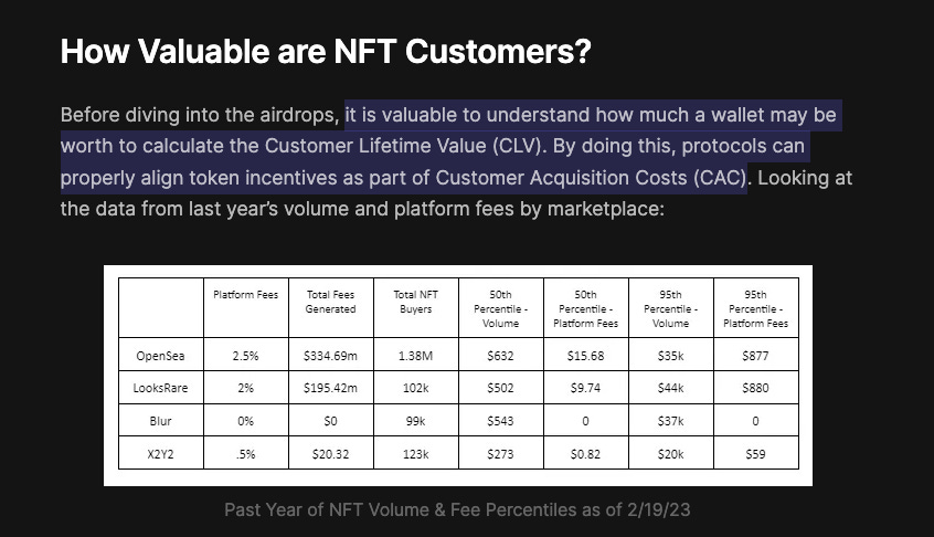 One hypothesis of how to think about airdrops is that they are focused on user acquisition and therefore follow the Lifetime Value > Cost of Acquisition calculus.