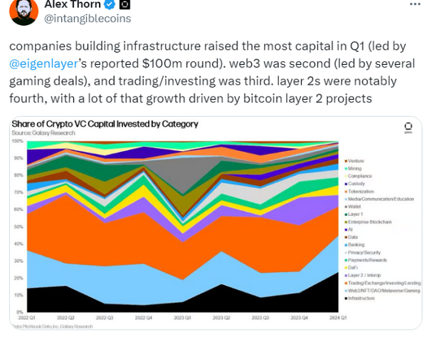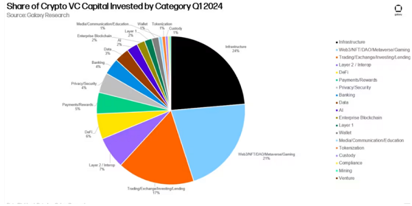 In the first quarter, VCs invested $2.49 billion into crypto firms, according to Galaxy Digital. Layer-2 projects were the fourth-most popular investment category, accounting for 7% of that total.