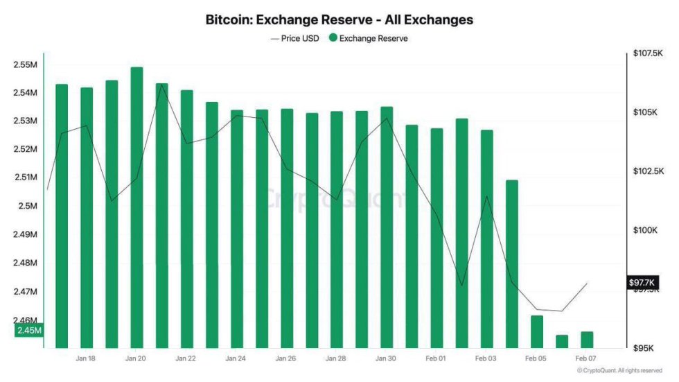 Bitcoin exchange reserves dropping | Source: Quinten Francois on X