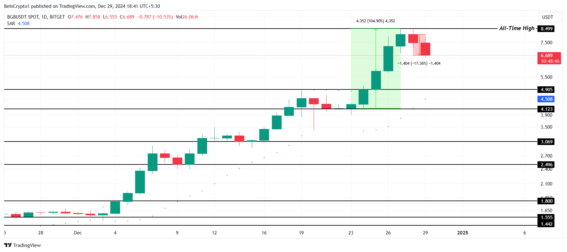 However, a strong recovery supported by bullish broader market cues could push BGB beyond its current ATH of $8.49. Achieving a new high would invalidate the bearish thesis and signal renewed momentum for the token, solidifying its position as a standout performer in the market.