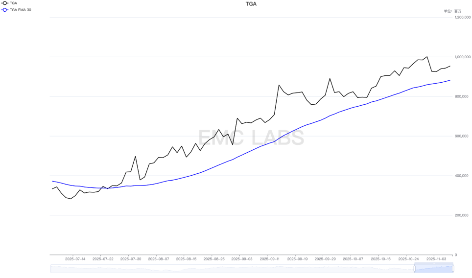 During this period, due to the US government shutdown and the difficulty in carrying out spending, the balance of the Federal Reserve's TGA account continued to reach record highs.