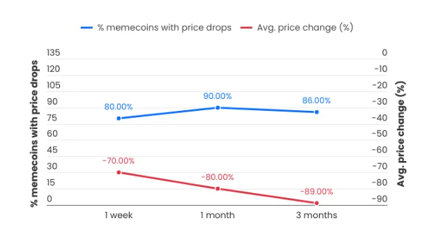 The decline of celebrity-endorsed meme coins mirrors the inherent risks in speculative investments. It also aligns with a recent report, which revealed the meme coin mirage. According to the report, 76% of influencer-promoted meme coins lose over 90% of their value within three months, leaving investors in losses.