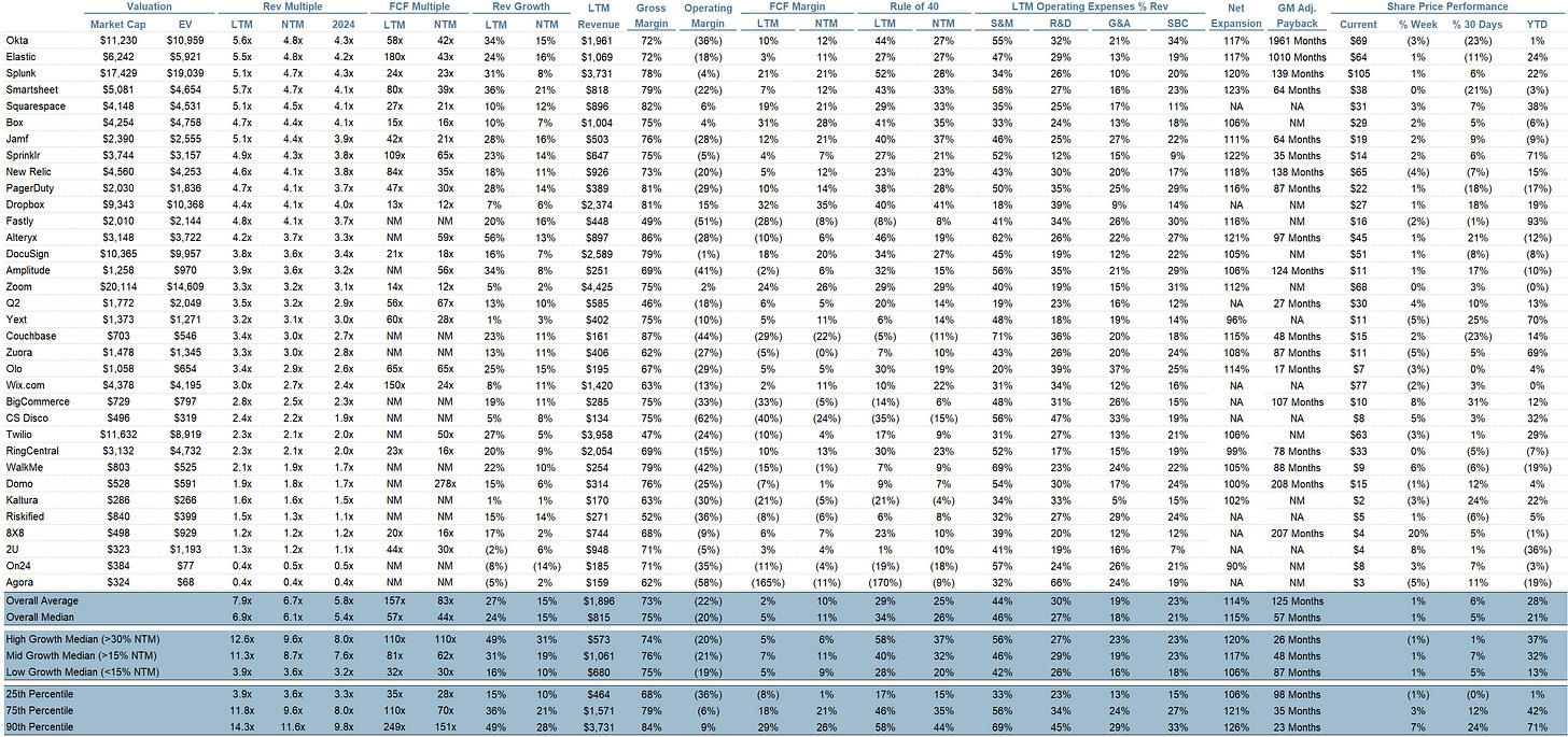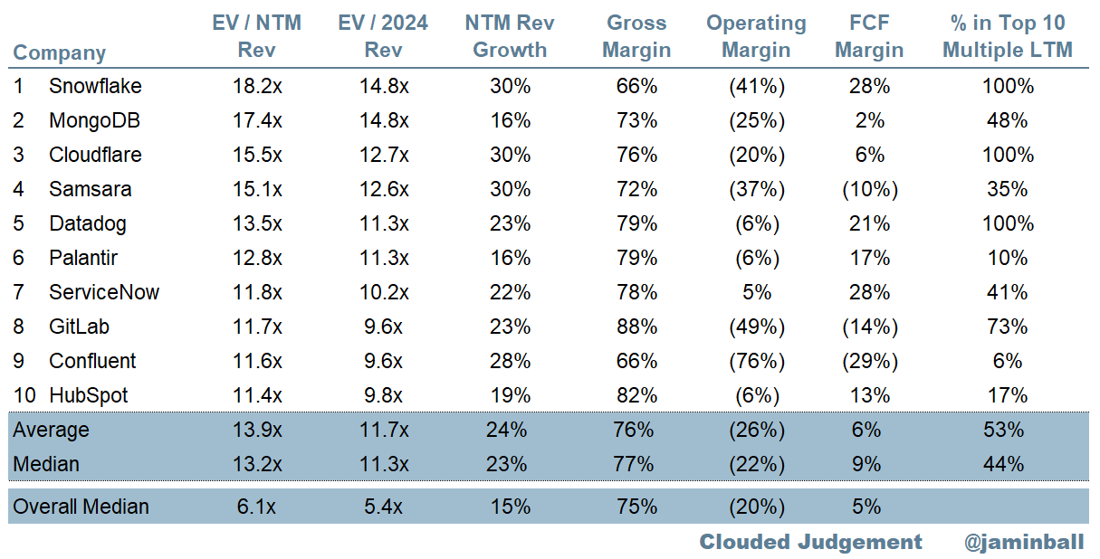 - Median LTM growth rate: 24%