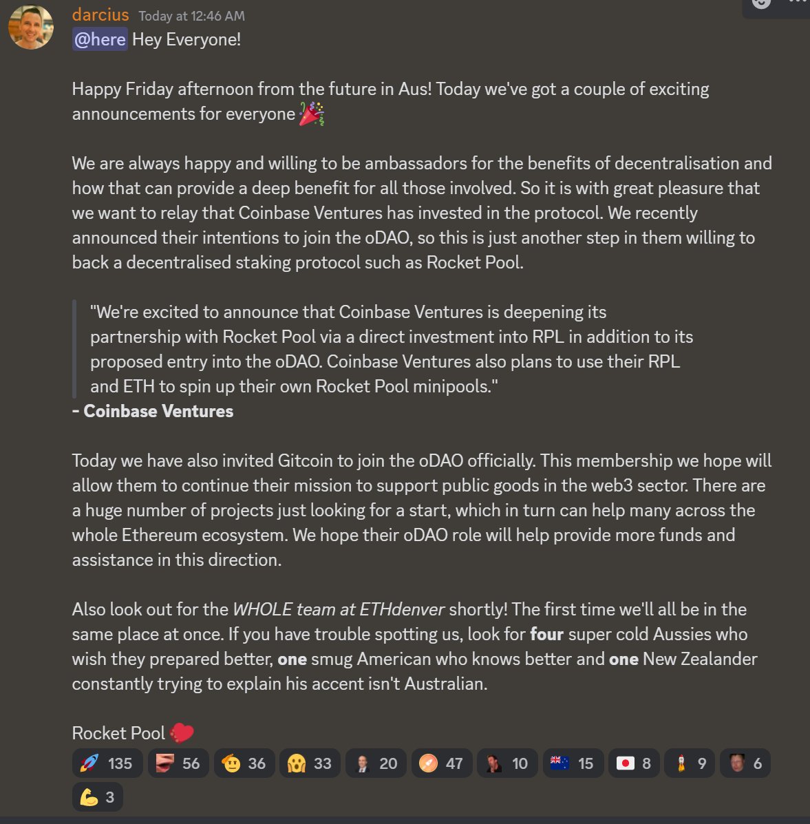 The investment was made in conjunction with a new collaboration between Rocket Pool and ODAO, a decentralized autonomous organization (DAO) that enables community-based voting on governance proposals.