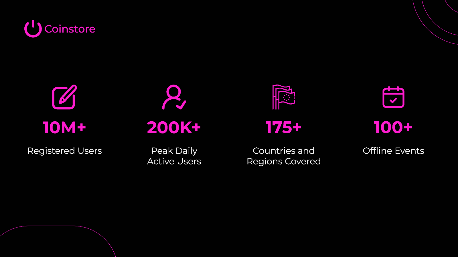 This ambitious transformation builds on a strong foundation: Coinstore has achieved 10 million registered users as of April, peak daily active users exceeding 200,000, and presence across 175+ countries. The platform has also hosted 100+ offline events, creating a complete online-to-offline ecosystem. This foundation supports the current brand transformation.