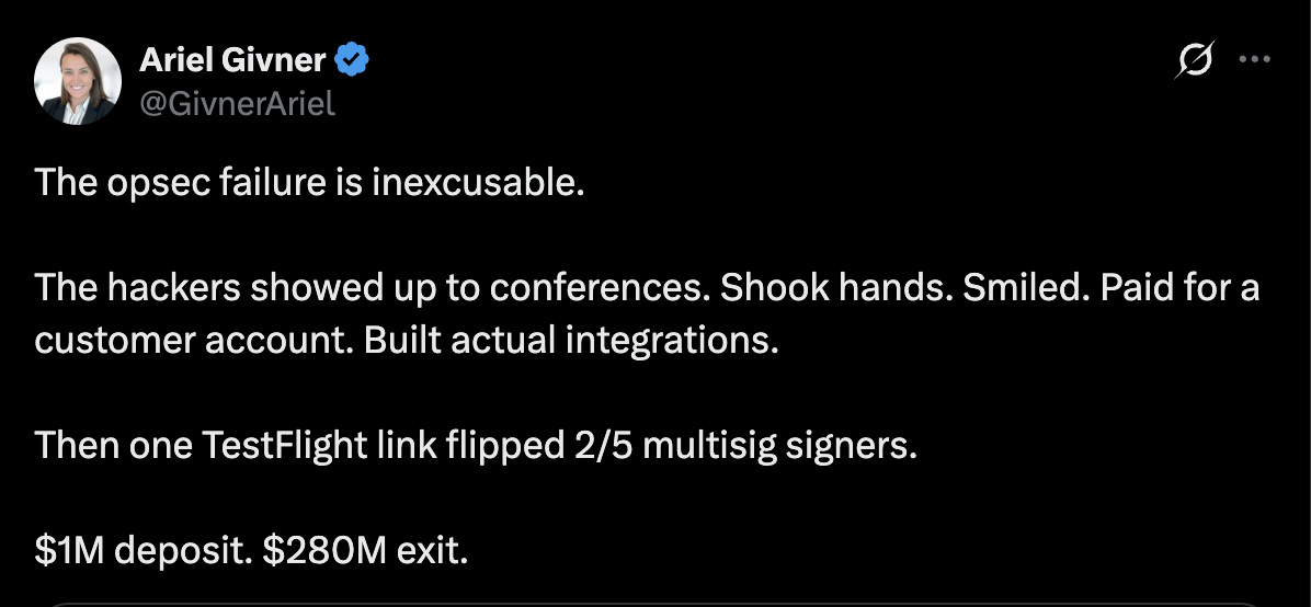 “Every serious project knows this. Drift didn’t follow it,” she said, adding, “They knew crypto is full of hackers, especially North Korean state teams.” Givner continued: