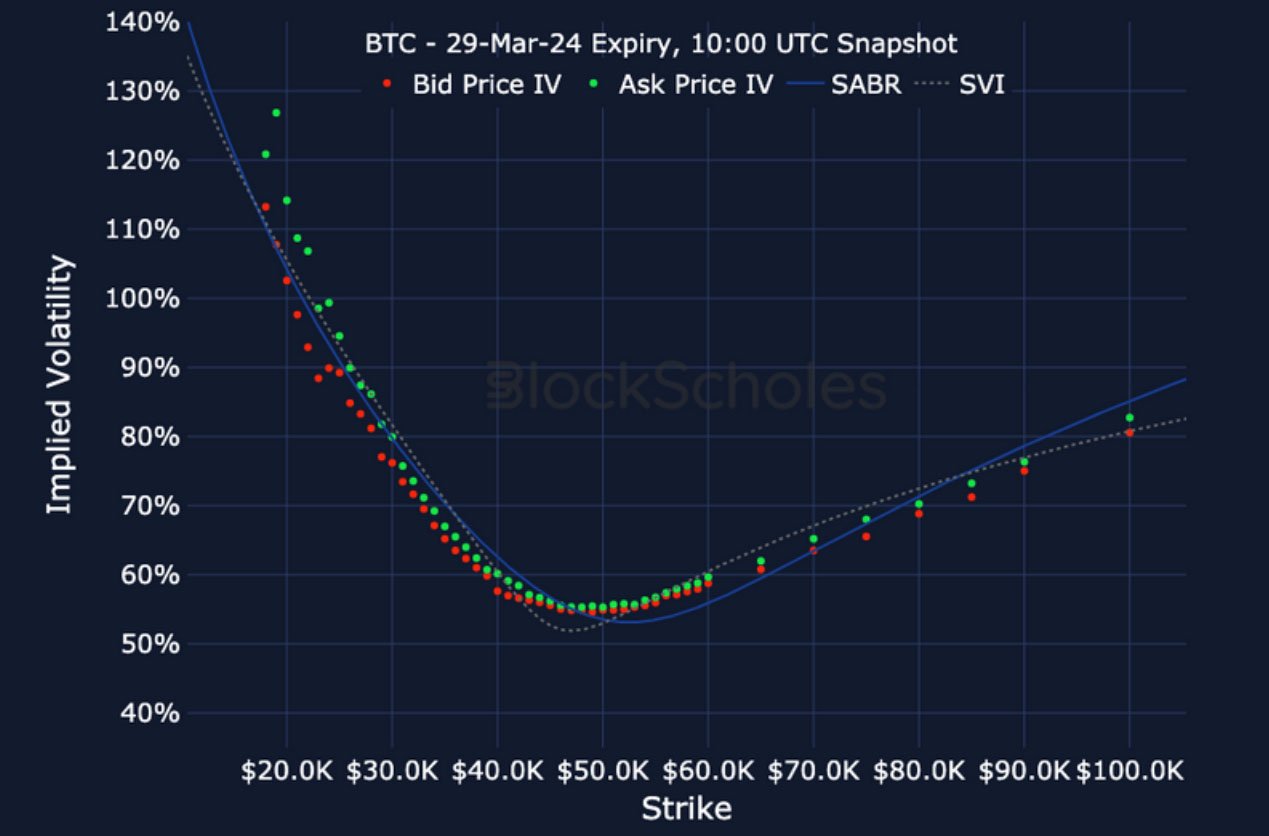 BTC SMILE CALIBRATIONS – 29-Mar-2024 Expiry, 10:00 UTC Snapshot.