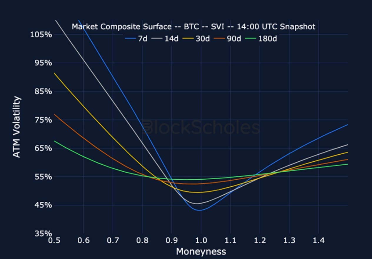 BTC SVI ATM IMPLIED VOLATILITY – BTC’s term structure is distinctly steep, in contrast to ETH’s stubbornly flat shape.