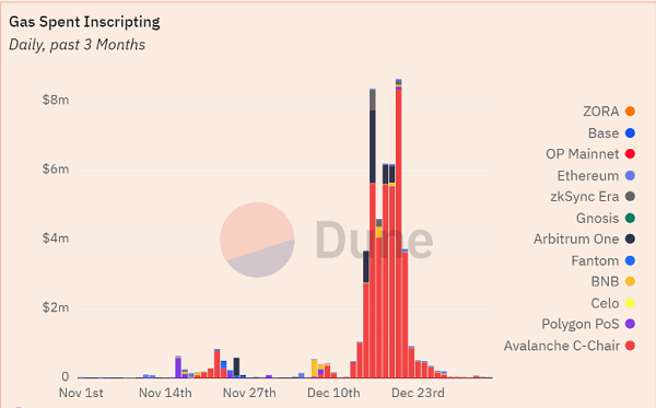 During the height of the inscription craze in December, certain networks experienced gas fees of over $1 million.