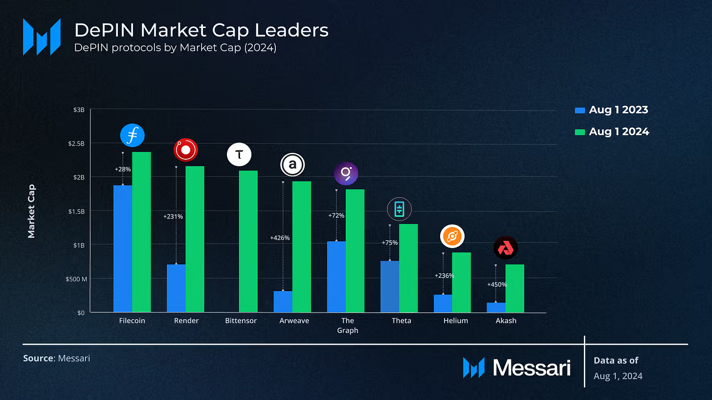 For example, GPU marketplaces like Akash, Render, IoNet, and Exabits have developed sustainable revenues. Companies that allow users to share their network bandwidth like Grass and Gradient have found their niche in supplying services, like distributed web scraping, to web2 clients. Storage networks like Arweave, Filecoin, and Ocean have also done well by being the platforms on which these projects are built. Supply networks have flourished because of their ability to tailor their cheaper and more scalable services to off-chain customers.