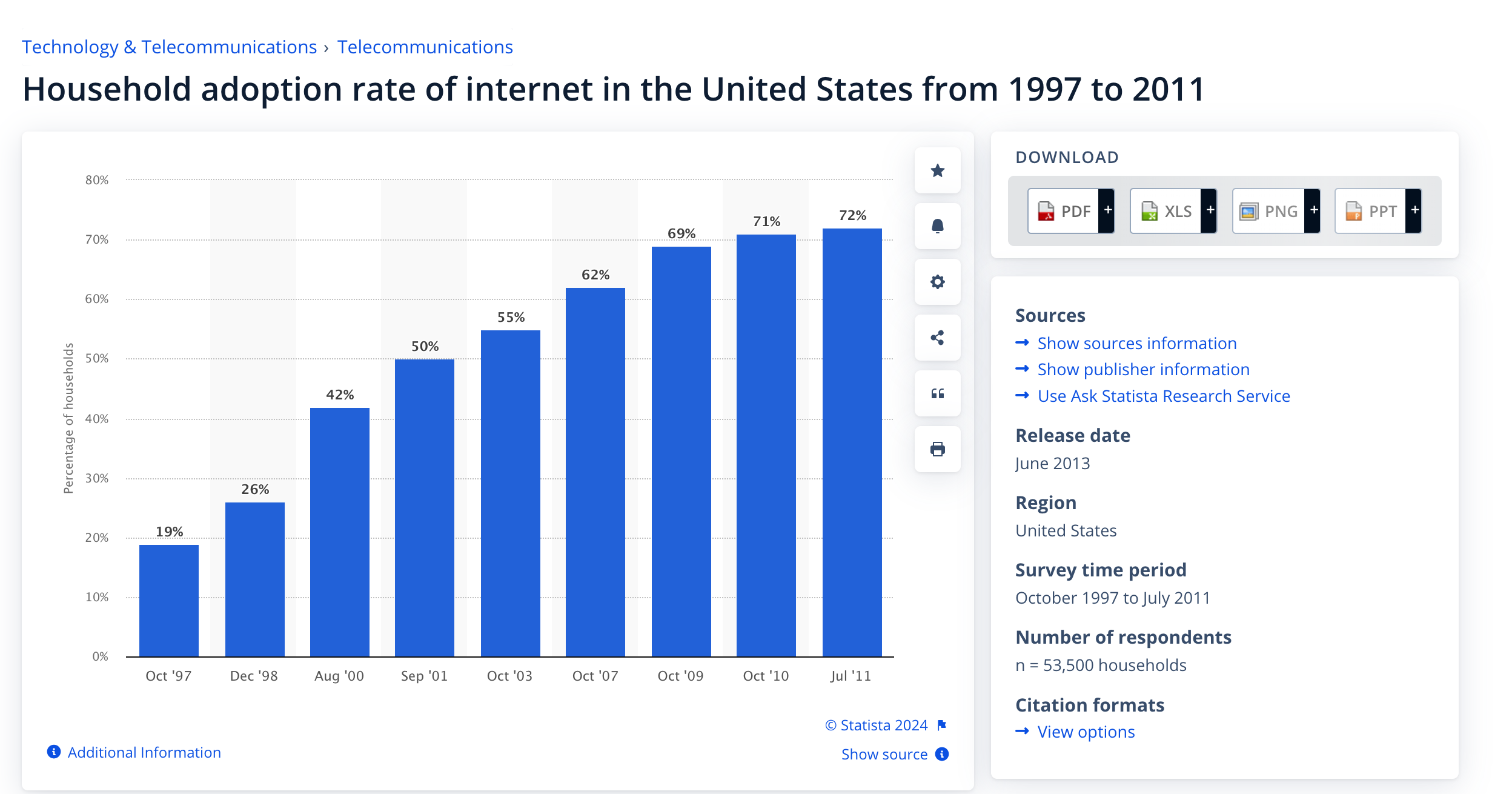 Google started in 1998 when 26% of all Americans had the Internet at home (and probably more at work):