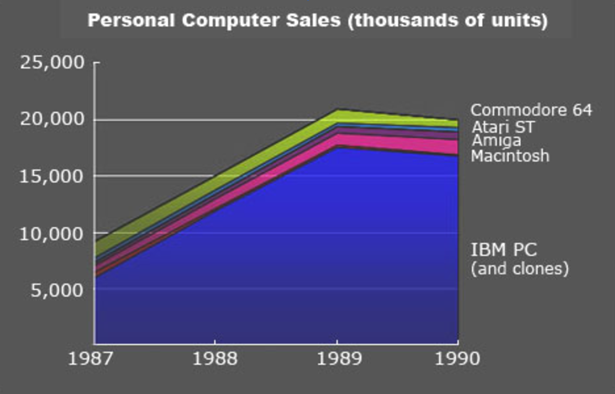 Microsoft Office was announced in 1988 when IBM PC sales were over 10,000,000 per year.