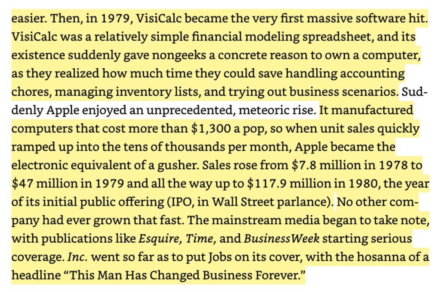 Think about Apple and VisiCalc for a second. In 1979, some people paid $1,300 for a computer to use a computer program. That's $5,350 in 2024 dollars. Now, that's what we call building something people really want.