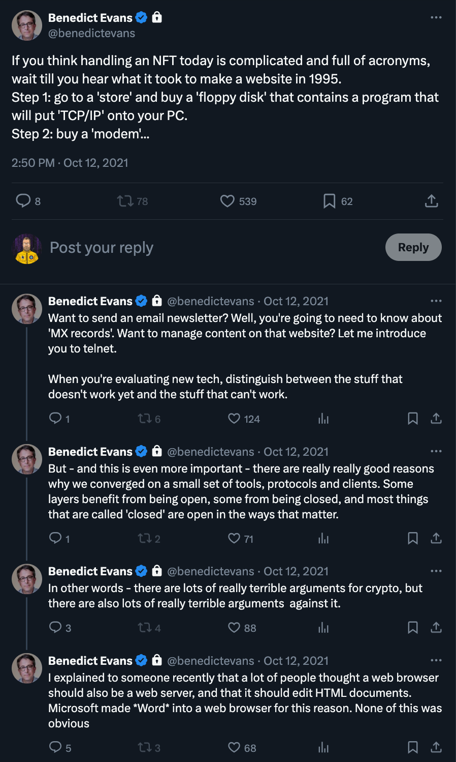 And in blockchain, switching costs are lower than in web2, so you just can’t afford the luxury of enshittifying the product that Facebooks and YouTubes of the web2 world had.