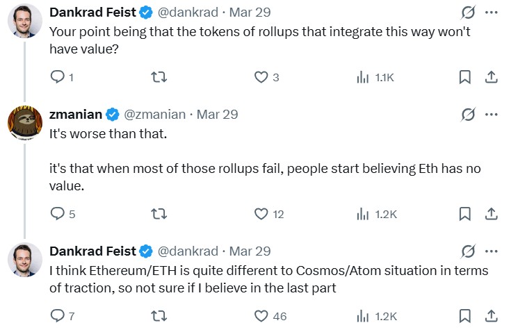 Gnosis co-founder Martin Köppelmann pitched in to Feist and Manian’s discussion by pushing back at the comparison. He framed EEZ around synchronous composability and access to Ethereum’s state rather than shared security or revenue models.
